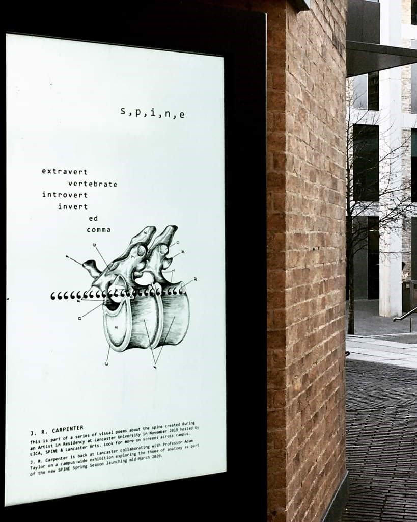 J. R. Carpenter is an international award-winning writer and interdisciplinary artist working across performance, print, installation, and digital media. Her pioneering works of digital literature have been presented in museums, galleries, and festivals around the world. Her digital poem The Gathering Cloud won the New Media Writing Prize 2018. Her poetry collection An Ocean of Static was highly commended by the Forward Prizes 2018. She was Artist in Residence in LICA at Lancaster University in November 2019.